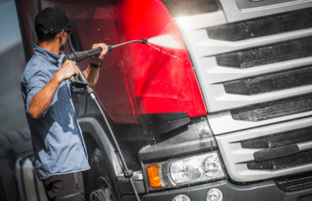 Our White Glove Exterior Hot & Soapy Pressure Wash service provides a thorough, high-quality cleaning for your heavy-duty truck. Using specialized equipment and eco-friendly detergents, we meticulously wash and degrease every inch of your vehicle's exterior, leaving it looking pristine and well-maintained. This comprehensive maintenance service ensures your truck's appearance and longevity are preserved, keeping it in top condition for years to come.